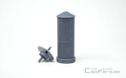 An der Außenseite vom Prellbock sind die Verschraubungen als Vierkantkopf, auf der Innenseite als Muttern dargestellt. Die Teile können an jeder beliebigen Stelle auf das Schienenprofil eingeklipst werden, passt für Gleise von Hübner/Märklin, KM1, WENZ und auch bei HOSENTRÄGER.