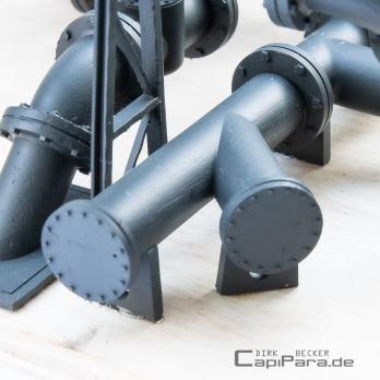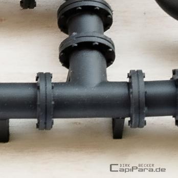 Das Rohrsystem 400 bietet flexibel einsetzbare Rohr-Bauteile mit unendlich vielen Einsatzmöglichkeiten. Die Zahl 400 bezieht sich auf den Außendurchmesser der Rohre, 400 mm im Vorbild entsprechen im Modell-Maßstab 1:32 also 12,5 mm Durchmesser. ALLE Bauteile in diesem System werden mittels Verbindungsmuffen untereinander verklebt. Für Rohrenden gibt es verschiedene Blindmuffen. Ergänzt wird dieses Rohrsystem durch die "Kessel-Bauteilen" und ab April 2024 durch einen kleineren "Bruder", dem Rohrsystem 280.